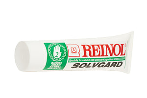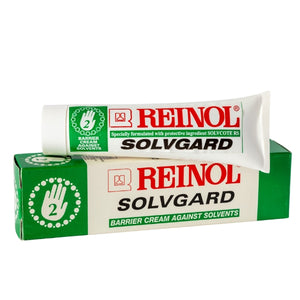 For adequate skin care against THINNERS, SOLVGARD should be applied more often. It is very effective against powders injurious to the skin. SOLVGARD contains skin care components to care for the skin, while the coating guards against solvents.